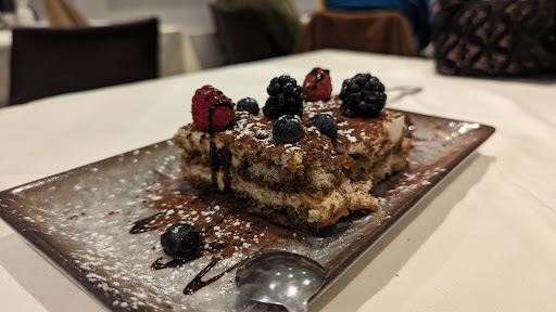 Die Antipasti waren reichlich für zwei Personen, die Zutaten frisch. Passt! Das Cacio e Pepe ist ein Traum und den Besuch allein Wert. Beide Fleischgerichte wurden sehr gut zubereitet, das Fleisch von wirklich guter Qualität, die Saucen zum dahinknien. Der Kellner gestern hat nicht gefragt, wie wir unser Fleisch möchten (nächstes mal dann :)) und wie immer habe ich nicht darauf aufmerksam gemacht, um zu sehen, wie der Koch grundlegend arbeitet. Es kam Medium, auf den Punkt. Das Dessert... Meine Frau mag Tiramisu nicht. Ich liebe es. Gestern, haben wir es beide geliebt. Sehr, sehr lecker. Natürlich selbstgemacht.