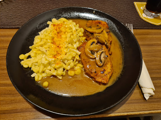 Read moreWir waren zu Viert dort und haben ausnahmslos sehr lecker dort zu Abend gegessen. Die Gerichte (Pfeffersteak mit Bratkartoffeln, Sauerbraten mit Spätzle, Schnitzel mit Pommes und Rahmsoße sowie auch die Beilagensalate) waren frisch zubereitet und ansprechend angerichtet. Das Steak war auf den Punkt wie gewünscht und die Schnitzel knusprig wie es sein soll. Das Bier im zünftigen Steinkrug hat alles abgerundet. Handwerklich top! Der Service war sehr freundlich und aufmerksam. Preis Leistung stimmt hier auch auf jeden Fall. Das Lokal liegt etwas versteckt im Industriegebiet, ist barrierefrei und es gibt direkt davor genügend Parkplätze. Wir kommen auf jeden Fall wieder! Vielen...