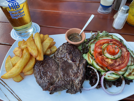 Ich habe das Rumpsteak (Medium) bestellt. Es wurde well-done serviert, was für mich bei gutem Fleisch dennoch ok gewesen wäre (kommt mal vor) - jedoch glich das Rumpsteak eher einem fettdurchzogenen, dünnen Sportplatz-Steak. Normalerweise lasse ich kein Essen zurück gehen, aber das war eine komplette Enttäuschung. Die Bedienung hat mir ohne Diskussion ein neues Essen gebracht. Dieses Mal war das Rumpsteak etwas besser, jedoch für den Preis für mein Empfinden bei weitem nicht gut genug. Meine Pommes waren lätschig.