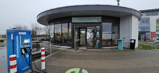 Read moreDirekt an der Autobahn liegt, wie er sich selbst schön betitelt, “Deutschlands erster Bio Coffee Shop”.☕️ Das Angebot ist wirklich groß und der Laden dementsprechend überlaufen. Leider führt dies zu etwas längeren Wartezeiten, da die drei Damen hinter dem Tresen zwar freundlich aber eher etwas unstrukturiert bzw. leicht überfordert wirken.🫣😅 Am besten den Kassenzettel aufheben damit es hier zu keinen Missverständnissen kommt.✅ Was das Ambiente angeht (sorry das is jammern auf sehr hohem Niveau) so passt dieses irgendwie nicht ganz ins Konzept. Es gibt wunderschöne Holzstühle wie man das in einem solchen Laden der seinen Stolz auf 100% Bio zeigt erwartet und dann ist irgendwie einfach alles voll mit Kunstpflanzen.🌱 Klar einfacher zu pflegen, aber hat in nem Bio Laden irgendwie nix verloren.😉 Wie gesagt jammern auf sehr hohem Niveau aber ansonsten wirklich top und wer etwas Zeit mitbringt bekommt hier wunderbare...