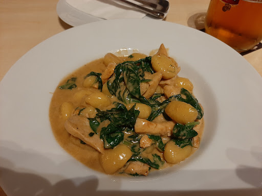 Immerhin hatte er zwei Tische voll besetzt ( 4 Menschen) und dann kamen noch wir Zwei dazu 😳 An einem Feiertag. Was fällt uns eigentlich ein? Die erste Scham unserer Dreistigkeit ging vorüber und wir bekamen die Karte. Freundlich wie man ihn kennt, nahm er unsere Bestellung auf. Die Getränke kamen flink und Eins von den Zweien war sogar das Richtige 👍 Also eins muss man ihm lassen, dass Essen war wirklich schnell am Tisch. Gut, auch da hat nur Eins gestimmt, aber wer will schon ein bestelltes Wiener Schnitzel mit Kartoffeln, wenn er überteuertes Hähnchengeschnetzeltes haben kann? Richtig! Kein Mensch. Da man Lebensmittel nicht verschwenden sollte, nimmt man das in Kauf und entscheidet sich dann einfach mal um. Schlecht war es nicht, aber da kannten wir auch noch nicht den Preis 🙈