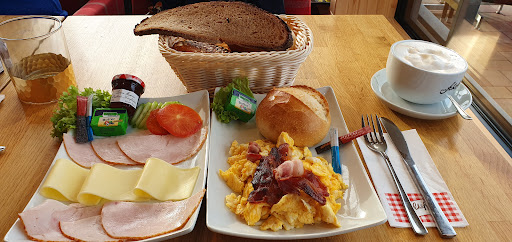 Völlig überfordert die Mitarbeiter, unfreundlich, mehr gibt es nicht zu sagen. Vielleicht noch nicht an die Eingänge setzten, im ganzen vorderen Bereich zieht es wie verrückt. und die Gutscheine die die Woche verteilt wurden Grenzen an unlauteren Wettbewerb. Ein Beispiel? Gutschein für ein Omelett mit Brötchen und Butter statt 3,95€ für 3,50€! Soweit so gut. Im normalen Angebot gehört zu jedem Omelett sowie Frühstucksangeboten ein Warmgetränk für 1€ dazu! Also legte ich den Gutschein für ein Omelett vor und wollte dazu ein Warmgetränk, neeeeeee aber nicht in Verbindung mit dem Gutschein, okay dann nehme ich einen MIDI Kaffee der zum Omelett gehört dazu mit einem weiteren Gutschein für einen Euro ( ein Gutschein für einen Kaffee der zu jedem Omelett ein Euro kostet über ein Euro, muss man nicht verstehen, wozu der Gutschein gut sein soll erklärt sich mir immer noch nicht) neeeeeee ( Gott die Verkäuferin hat ihren Beruf verfehlt) ich hab ja einen Gutschein, geht nur einer.......schwitz ok.....also Gutschein für ei..... Und ein Kaffee Bitte!!! Verkäuferin rennt los und stellt Tasse unter Maschine kommt zurück, obs noch was sein darf?!? Ah.... Jaaaaa, ein bacon Omelett..... Überleg.....geht da jetzt ein Kaffee zu für ein Euro?!? Antwort (patzig) ja wenn sie einen dazu wollen! Ok....Sie rennt los macht den zweiten Kaffee, kommt zurück (jeweils ohne Kaffee) fragt wieder obs noch was sein darf.....ich verneine, Sue klatscht ein vibrierenden schwarzen Kasten aufs Tablett, versucht mir im wegrennen zur Kaffeemaschine das Ding zu erklären, daß munter auf meinem Tablett Rum tanzt, kommt zurück, stellt die Tassen auf selbes und ich beobachte wie mein Kaffee durch den Tanz sich über meine Tasse ergießt! Ich trage also behutsam mein Tablett zu meinem Tisch und stelle fest das mein Omelett (ohne Gutschein) 3,95€ kostet inkl. 1€ Kaffee der dort standardmäßig dazu gehört) mich nun Dank Gutschein 3,50€plus 2,20€ für Kaffee gekostet hat......fühle mich verarscht, hole nach 15min meine Omeletts ab, der Kaffee ist kalt und geschmeckt hat er nach der Wartezeit auch nicht mehr. Hier war ich definitiv einmal...