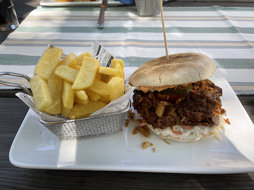 Read moreWir waren heute an Pfingsten zur Coronazeit da. Am Eingang (vom See aus kommend) hing ein Schild, dass man auf einen Kellner warten soll und der uns dann zu einem Tisch führen würde. Nach 20 min rumstehen, bin ich auf den Kellner zugegangen und er sagte, dass er es schlecht für uns aussehen würde. Glücklicherweise sind im gleichen moment ein paar Gäste gegangen, weshalb wir doch Platz nehmen durften. Erstmal gesessen warteten wir wieder über 40 min, bis dass wir überhaupt einmal die Karte bekommen haben! Später kam ein Kellner und wir gaben unsere Bestellung auf. Während wir auf das Essen und die Getränke warteten, kam eine weitere Kellnerin, welche uns ziemlich unfreundlich nocheinmal die Bestellung entgegen nehmen wollte. Diese junge Dame konnten wir schon während der, ohnehin langen Wartezeit, beobachten und sie kam auch bei den anderen Gästen eher Negativ entgegen (lustlos, unfreundlich und schon fast patzig). Irgendwann kam dann unser Essen, welches sehr mundete. Das Problem hier war leider, dass ich mein Essen schon aufgegessen hatte, bevor die Getränke überhaupt am Tisch waren. Diese haben leider sehr lange, auch bei den anderen Gästen, auf sich warten lassen.