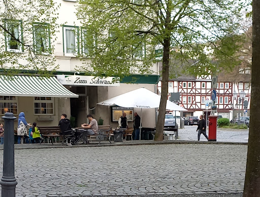“Just terrible!”||||We came to the Hotel Zum Schwan in Dillenburg at the end of our walk of the Rothaarsteig and after all the friendly and pleasant hotels of the previous days it was an immense anticlimax. The whole atmosphere was one of neglect, indifference and decay (paint peeling off the woodwork, shabby furniture, stained carpets etc.). Of the two single rooms we stayed in one (at 49 euro) had no window, but only got some light and air through the bathroom, so that the bathroom door had to stay open all the time. The other room (at 45 euro) had a tiny, dirty bathroom squeezed into a cupboard. Staying on the second floor we also felt that there was a fire hazard, as there were no escape routes apart from steep heavily carpeted stairs, and that, as the hotel did not register our names or presence in any way, there might be no way of finding or identifying us in case of an emergency. The food was bad too and the service extremely unsympathetic. We had beef which had a distinctly chlorous taste and when we told the lady we could not eat it our complaints were met with scorn (though, eventually, we got an extra desert as compensation). The next morning at breakfast we found that the yoghurt was two weeks past its sell by date. Altogether a terrible hotel, never to be...
