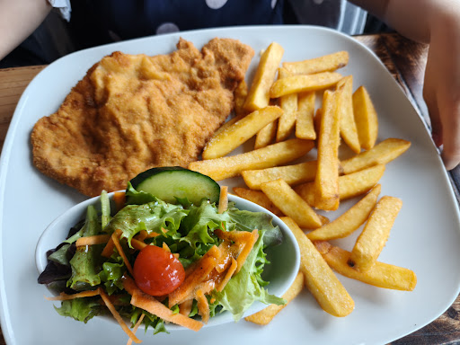 Das Restaurant ist klein aber fein, nach Wechsel endlich sauber und aufgeräumt. Das Essen war hervorragend, der Service sehr gut und zuvorkommend allerdings noch n bisschen holprig. Das Essen war sehr lecker, die Portionen mehr als groß genug. Jedoch hätte zwischen Vorspeise und Hauptgang ein bisschen mehr Zeit sein können, nun ja meckern auf hohem Niveau. Obwohl die Desserts in der Vitrine sehr schmackhaft und ansprechend aussahen war nach den reichlichen Portionen einfach kein Platz mehr. Der Wein war gut gekühlt aber nicht zu kalt, das Bier mit schöner Schaumkrone serviert und zur Begrüßung gab es noch einen Sekt. Die Preise sind gemessen an Qualität und Portionsgröße sehr fair. Für 2 Personen 70 € reiner Rechnungsbetrag, völlig ok. Da hab ich schon teurer und deutlich schlechter gegessen. Die Karte ist klein aber mit guter Auswahl, neben Burger und Schnitzel gibt es asiatische Gerichte. Da wird jede*r was finden. Nur vegan/vegetarisch könnte schwierig werden, gerade mal 2 fleischfreie Gerichte auf der Karte, ob die vegan sind? Einen Punkt ziehe ich für 3 Dinge ab: Es war viel zu hell, unser Tisch (rund in der Ecke) war ausgeleuchtet wie ein Schaukasten, das war schon unangenehm, vor allem als es draußen dunkel wurde. Warum weiß ich nicht, denn die anderen Tische schienen deutlich dezenter beleuchtet zu sein. Es gibt eine Tagesempfehlung, die ist an der Theke auf einer Tafel auf Kniehöhe. Als wir reingekommen sind, haben wir das überhaupt nicht wahrgenommen erst beim rausgehen. Wir wurden aber auch nicht vom Service darauf hingewiesen, schade. Das Restaurant hat seit gerade einem Monat geöffnet und mein Stuhl hatte bereits einen großen Riss im Polster. Das ist jetzt n bisschen kleinlich, aber nach 4 Wochen?