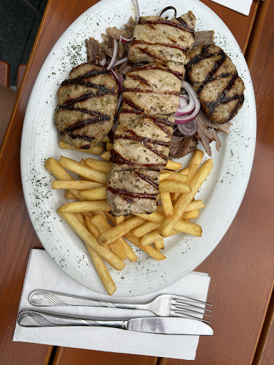 Meine Begleitung hatte einen gemischten Teller mit Souvlaki und Leber. Die Leber war seiner Aussage nach ziemlich trocken.