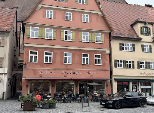 Waren am Sonntagmittag um 14:05Uhr dort. Ein Tisch war für uns im Außenbereich sofort frei. Mussten dann allerdings bis 14:20Uhr warten bis die Bestellung aufgenommen wurde. Das junge Mädel als Bedienung hatte offensichtlich keine Ahnung von dem was sie tun sollte, unterhielt sich lieber mit den Gästen die ihr bereits vertraut waren. Nachdem dann der Kaffee kam dauerte es noch drei Ansprachen und weitere 10 Minuten bis die Kaffeesahne am Tisch war. Der Zwetschgendatschi vom Tagesangebot war der absolute Höhepunkt. Wahrscheinlich noch vom Virvortag übrig gewesen, der Boden zäh wie Leder, mit der Kuchengabel nicht zu bewältigen, vier halbe Zwetschgen als Belag, und die Frische wohl herausgebacken. Bin dann zum Bezahlen lieber rein nachdem vom Mädel 15 Minuten nichts zu sehen war. Mein Fazit lautet: Dinkelsbühl Besuch ich gerne wieder, aber das Café Hagen werd ich...