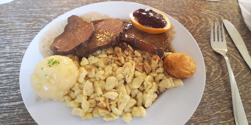 Das Tagesessen am Sonntag, der Burgunderbraten war sensationell. Beilagen nach Wunsch. Die Portionen sehr reichlich. Freundliche und bemühte Bedienung. Die Preise fürs Essen ebenfalls sensationell. Werden definitiv zum Essen...