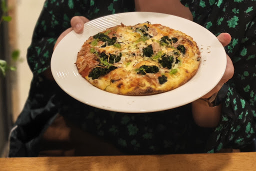 Read moreDie Pizzas bestehen aus einem sehr leckeren lockeren Teig, der mit frischen Zutaten belegt ist. Broccoli und Spinat kommen NICHT aus der Dose!!! Die Vielfalt des Belags für die Pizzas ist genial und man kann zwischen kleinen und normalen Pizzas auswählen. Ich habe jetzt schon mehrfach hier gegessen und dabei jedes Mal eine andere Pizza ausgewählt. Jede dieser Pizzen war ein Meisterwerk: Die Peperoni knackig und nicht zu scharf, zudem schön verteilt über dem Teig. Die Oliven in schöne kleine Stücke geschnitten, statt normalen Zwiebeln eine etwas süßlich schmeckende Sorte verwendet. Auch der Knoblauch ist frisch und lecker und nicht so "ranzig" wie bei manch anderem Restaurant.