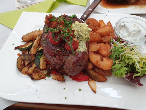 Read moreSehr schöne Terrasse, Gerichte haben eine gute Größe, dass man auch noch eine Vorspeise oder Nachtisch schafft. Auch die Kindergerichte sind schön zubereitet und nicht nur aus der Kühltruhe. Essen war auch sehr gut. Die Bedienung stets freundlich und umsichtige, die Preise angemessen. 1 Stern ziehe ich ab, da es einen Salat nur als Vorspeise gab. Gerade bei sommerlichen Temperaturen wären ein/zwei Salate schön (Hühnchen ist sowieso auf der Karte, warum also nicht auf den Salat und fertig). Ansonsten eine absolute Empfehlung.