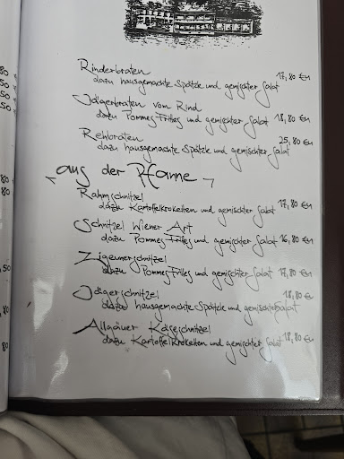 Update: 01.2025 Sonntag Mittag im Januar- Nebenzimmer voll. Trotzdem war der Service flott. Ich war etwas enttäuscht. Als Vegetarier hat man hier nur die Alternative zwischen einem Salat mit Käsestreifen und einem Gemüseteller mit Kartoffeltalern ( Rösti) und Backcamenbert. Ich habe gefragt, welche Gemüse da drin sind, auf den Blumenkohl hätte ich gern verzichtet, aber man hat mir gesagt, das ginge nicht. Ich dachte, da kommt etwas à la bunte Gemüsepfanne- aber es waren drei Häufchen Gemüse auf dem Teller: Bohnen, Karotten und der Blumenkohl. ich habe mich geärgert, da hätte man doch anbieten können, statt dem Blumenkohl eine zweite Portion Bohnen oder Karotten? Schade drum. Bis auf den ungeliebten Blumenkohl hat es aber gut geschmeckt. Auch die anderen waren sehr zufrieden, geschätzt werden die kleineren Seniorenportionen für Leute mit dem nicht ganz so großen Hunger. Fleischesser kommen hier voll auf Ihre Kosten. Leider gibt es Kartoffeln als Beilage nur in Form von Pommes oder Kroketten. Das Ambiente : mit vielen Bildern aus dem Wald und mit Wild drauf. Gut: die Akustikdecke mit vielen schallschluckenden Löchern : auch wenn das Nebenzimmer voll ist, wird es hier nicht zu laut, das wäre ein guter Tip für andere Gaststätten. Insgesamt fanden wir den Raum diesmal ziemlich kühl- wir saßen nicht am Fenster nähe Heizung und den Frauen war es kalt. Positiv waren die neu renovierten Toiletten. angenehm: eine Toilette mit Sitzerhöhung. Sehr Kinderfrundlich, im Flur finden sich Kinder...