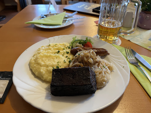 Zu viert kamen wir gegen 17:00 Uhr in der Gaststätte an, wo wir schonmal gut empfangen wurden, durch eine von Gaststätten Seite aus vergessene Reservierung. Uns wurde also spontan ein Tisch gedeckt, wo wir uns hinsetzten und Speisen und Getränke bestellten. Kurz darauf kamen zwei große Gruppe (ca. 15 und ca. 10 Personen), welche sich rechts und links neben uns platzierten. Das Ambiente verschlechterte sich direkt, da es ziemlich laut und anstrengend wurde.