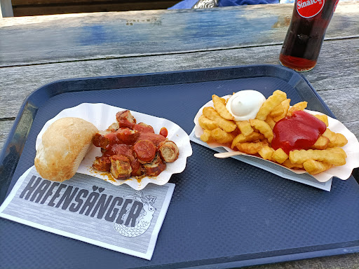Read moreDer Hafensänger ist ein Restaurant mit Terrasse in der oberen Etage und ein Imbiss im Erdgeschoss. Das Objekt ist schön gelegen auf einem Deich mit Blick zur Nordsee, dem Strand, dem Hafen und zum Campingplatz. Der Imbissbereich ist auch gleichzeitig Zugang zum Strand, das macht es sehr unruhig und chaotisch in dieser sonst sehr schönen und gemütlichen Umgebung. Am Bestellfenster muss man auch die Eintrittskarten zum Strand kaufen, wenn man nicht die Nordsee-Karte hat. So hat man hier teils lange Wartezeiten. Die Speisen im Imbiss haben qualitativ und preislich nicht überzeugt. Die Currywurst mit Brötchen (einem halben aufgebackenem Tiefkühlbrötchen) für 3,90€ ist eine Kümmelroster und geht gar nicht für eine Currywurst! (Die Portion Pommes auf dem Bild ist extra bestellt für 3,20€) Bei dem Fischbrötchen mit Kibbelingen hat der Fisch wenigstens geschmeckt. Das Brötchen ist auch das aufgebackene Tiefkühlbrötchen. Der Milchreis mit Kirschen für 4,90€ ist Fertigessen aus der Tüte. Mein Fazit zum Imbiss: sehr schöne Atmosphäre, Speisen qualitativ minderwertig zu überteuerten Preisen. Entweder sollte man die Speisen verbessern oder die...