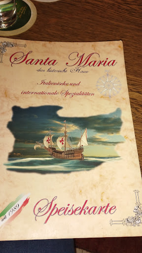 Empfangen, wird man von einem Biergarten der eher einem Jahrmarkt oder einem Rummel gleicht. Bunt zusammengewürfelte Deko mit Möbeln der 80er. Das gleiche Stilmittel findet sich nun auch im Restaurant selber wieder. Ich kann nicht genau sagen wie oft der Name Santa Maria an den Wänden stand oder wie viele Schiffsmodelle da herum standen, aber es waren eindeutig zu viele. Ansonsten auch hier der Eindruck als wäre der Zirkus in der Stadt.