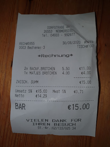Read moreSelten so eine Abzocke erlebt. Wir werden nach der Getränke Bestellung gefragt ob wir vorm Essen ein Friesengeist, eine Spezilität aus Norddeutschland, trinken möchten. Wir bejahen dieses, bekommem einen leckeren Friesengeist. Dierkt dannach die nächste Nachfrage ob wir etwas Brot und Tzakti möchten, wieder ohne einen einzigen Hinweis dass das etwas zusätzliches kosten würde. Beim Brot dachten wir dieses ja bereits. Essen war lecker kann ich nix sagen, Preise dafür auch fair. Beim Bezahlen dann auch die Abzocke, das Brot kostete fast 10 Euro, kein ansatzweise gerechtfertiger Preis, aber war nicht die Höhe. Ich bezahlte pro Schnapsglas, 4,40 €, wie gesagt ohne jeglichen Hinweis das es kosten würde. Es wurde so dargestellt als, wäre das ein Gruß des Hauses. Bin echt sauer auf diese Abzocke. So eine schwache Art und Weise mir das Geld aus der Tasche zu ziehen. Der Laden sieht...