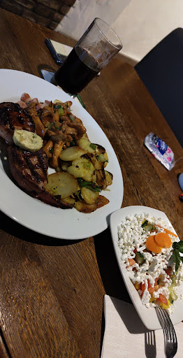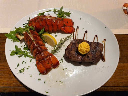 Read moreWir waren gestern spontan in diesem Steakhouse essen. Die AussenplĂ€tze sind wirklich ansprechend. Nachdem wir uns gesetzt haben kam auch prompt Besteck die Karte. Wir wollten erstmal schauen was es zu trinken gibt. Die Auswahl ist salobb gesagt winzig. Am Ende wurde es eine Flasche Wasser und fĂŒr meinen Mann eine Coke Zero. Die GetrĂ€nke wurden schnell gebracht und sofort gefragt ob wir schon wissen was wir essen wollen. Auch da brauchten wir noch einen Moment . Zu dem Zeitpunkt haben uns schon zwei verschiedene Personen uns bedient. Dann haben wir gewartet und gewartet. Neben uns setzte sich eine Familie die dann tatsĂ€chlich eher das Essen bestellen konnte als wir. Nun gut wir haben unsere Bestellung aufgegeben. Die Vorspeise bestand aus einem gemischten Salat und fĂŒr meinen Mann Rinder carpaccio, Mozarella und Rucola. Mein Mann hat gefragt ob man die Tomaten weglassen könne und das ging auch ohne Probleme. Die Vorspeise kam und mein Salat war solide. Diese Vorspeise meines Mannes hat 14,90 gekostet, es waren zwei Mini Scheiben Rind ein Haufe. Rucola und drei dicke Scheiben gĂŒnstiger Mozzarella. FĂŒr den Preis eine Frechheit. Die Hauptspeisen kamen. Ein Grillteller ohne Zaziki und mein Pute Bombay. Das sollte ein Curry sein das allerdings nicht mit Kokosmilch sondern mit Sahne gemacht wurde. Der Reis schwamm in Butter. Das Ende vom Lied war wir waren enttĂ€uscht sind sehr schnell gegangen kommen auch nicht erneut. Insgesamt haben wir drei bedienende Personen gehabt. Fazit: fĂŒr ein Steakhouse war UNS die QualitĂ€t...