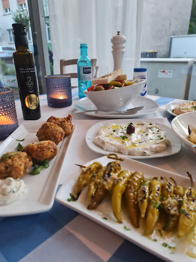 Read moreWir waren heute nach längerer Pause, da wir eine Anfahrt von 40 Minuten haben, mal wieder in der Taverna zum Abendessen. Wie bei den bisherigen Besuchen wurden wir auch heute nicht enttäuscht. Das Personal war freundlich und aufmerksam. Die Getränke sowie die Speisen kamen zeitnah und waren frisch und schmackhaft. Wir mögen die Atmosphäre dort sehr. Es ist eine tolle Alternative und das komplette Gegenteil zu den üblichen Säulen-Statue-Gyros-Fleischberge-Metaxasauce-Tempeln. Das Ambiente, die Deko sowie die Speisekarte erinnern an eine gemütliche Taverne irgendwo an der griechischen Küste, es fehlt nur der Meerblick. Besonders hervorzuheben war heute die Feststellung, daß die Dorade meines Mannes sowohl im Ganzen gegrillt als auch als Filet ohne Aufpreis zu bekommen war. Das haben wir in anderen Restaurants, leider auch in Griechenland, schon mal anders erlebt. Die Kombination mit Kartoffelstampf und grünen Bohnen hat ebenfalls überzeugt. Mein Sofrito war ein Träumchen... superzart, hervorragend gewürzt und zusammen mit dem Kartoffelstamp und dem gemischten Briam-Gemüse eine sehr reichliche Portion. Wir hatten heute, wie immer, vorweg die gegrillten Peperoni mit Knoblauchöl bestellt und ebenfalls wie immer dachten wir, dass das gereichte Brot dazu gehörte... das dieses als Küchengruß in Verbindung mit dem auf dem Tisch befindlichen Öl, Balsamico und Salz gedacht ist, hab ich erst jetzt aus einigen Rezensionen erfahren. Die Idee finden wir wirklich richtig toll und sehr innovativ. Allerdings wäre vielleicht ein kleiner Hinweis auf diese moderne Küchengrußinterpretation nicht schlecht, da sie ja wirklich nicht gewöhnlich ist. Wir freuen uns jedenfalls schon auf unseren...