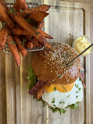 Ich war nun vor kurzem in diesem Burger-Laden und kann nur Positives berichten! Der Burger war unglaublich frisch - die Aubergine wurde perfekt gegrillt, und die Zutaten schmeckten allesamt sehr hochwertig. Besonders hervorzuheben ist, wie die Aromen der frischen Zutaten harmonierten und der Burger dadurch ein echtes Geschmackserlebnis wurde. Zu Beginn dachte und sagte mir in einem Selbstgespräch, dass es eher so ein 7/8'er Sterne Burger sei, aber es war wirklich sehr lecker. Auch die Präsentation war top: Der Burger wurde mit viel Liebe zum Detail serviert und sah einfach perfekt aus.