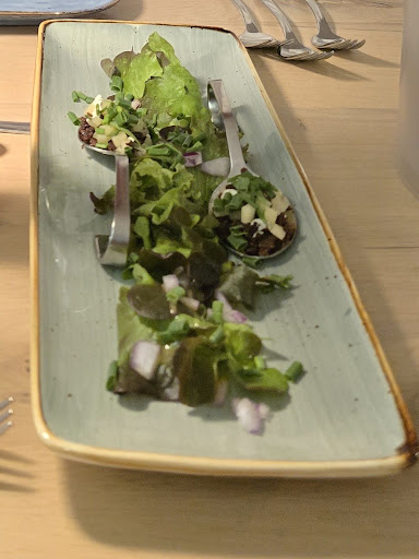 Der Service war offensichtlich bemüht und auch freundlich aber wird dem Anspruch nicht gerecht. Ich denke schon, dass man hier erwarten kann, dass einem die Wasserflasche mit Kühler nicht nur auf den Tisch gestellt, sondern auch ein erstes Glas eingegossen wird. Die Zuordnung der Beilagen zu den Gerichten konnte auch erst durch Nachfragen gelöst werden. Aber das ist nicht die Schuld des freundlichen Servicepersonals, sondern deren mangelhafte Anleitung. Auf ein Dessert haben wir verzichtet.