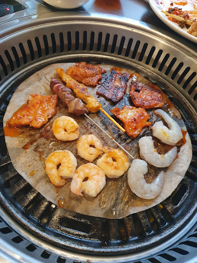 Gut,das Ambiente macht absolut nichts her aber darüber kann man hinwegsehen,wenn das Essen überzeugt. Wir waren zu viert an einem Samstag dort und haben BBQ und Hotpot bestellt. Wenn man mit dem Verfahren nicht vertraut ist,steht man erstmal ein bisschen dumm da. Es wäre super gewesen,wenn man uns kurz erklärt hätte,was wir zu beachten haben aber irgendwie haben wir uns alleine durchgefuchst. Unser Kellner war ein bisschen ahnungslos, aber vielleicht war er einfach noch neu, also nicht weiter schlimm. Als wir dann endlich alles beieinander hatten und loslegen konnten, hat uns der,ich vermute Chef, noch eine leckere Soße zusammengestellt, die wirklich sehr gut war. Die Auswahl war gut und es hat Spaß gemacht, alles zuzubereiten und zu teilen. Man muss mit den Soßen arbeiten weil alle Zutaten natürlich roh und ungewürzt an den Tisch kommen. Auch wenn der Anfang ein wenig holperig war, es war ein schöner Abend und ich denke dass wir auch wiederkommen werden weil das Konzept einfach mehr Spaß macht, als einfach nur essen zu bestellen und es zu essen. Den einen Stern Abzug gibt es auch nur weil man sich erstmal ein wenig alleingelassen fühlte und sich etwas mehr Zuwendung vom Personal gewünscht hätte. Am Essen selbst habe ich wirklich nichts auszusetzen. Die Qualität vom Fleisch kann ich selber allerdings nicht beurteilen da ich mich nur am Gemüse und Fisch bedient habe und daran kann ich wirklich nichts zu...