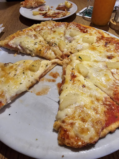 Read moreLittle to remind you of italy. Hand made dough, but baked in a pan. There is a reason italian pizza have just the right amout of cheese, or else you just boil the dough because there no place for the steam from the Tomato to escape. Way to much cheese, domino's style thick, far from italian pizza. The interior is colorful, there is random non child friendly YouTube music videos playing. The waiter was swift, and we had the feeeling she wanted us just in and out. Not recommended for families seeking an italian meal and a nice time. Probably ok if you just want your boring, but filling...