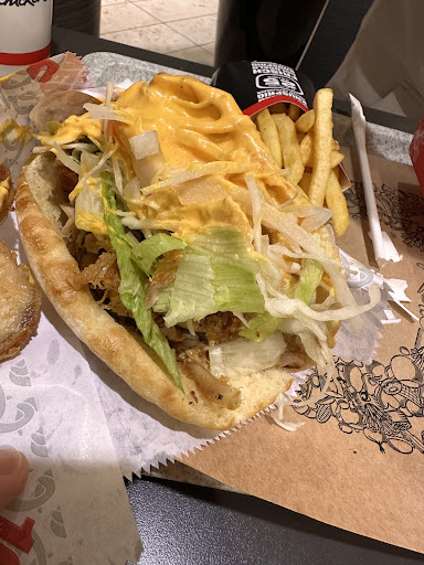 Read moreIch habe mich heute (01.03.2024- 17Uhr) bevor ich bestellt hatte schon gefragt warum ich den Laden nicht in guter Erinnerung hatte.... Hätten die Kinder keine Burger gewollt hätte ich definitiv nichts von diesem Laden bestellt!! Kurz zum Essen muss ich fairerweise sagen, dass es warm war und geschmeckt hatte (trotz überteuerten Preise!)...Aber bitte was für unerzogene Kinder arbeiten dort??? Sooo viel Kundschaft da gewesen und die 3-4 Mädels kamen nicht hinterher, weil sie bei ihrer Arbeit mit Schneckentempo am rumlatschen waren. Abgesehen davon, dass unsere Bestellung erst sich verspätet, und dann unvollständig war, und wir UNGELOGEN 3 mal hin mussten, weil uns immer wieder aufgefallen ist, das was fehlt waren wir am Ende echt genervt!! Zudem musste ich mit den beiden unverschämten Gören (eine mit Kopftuch und die andere dunkle mittellange Haare (beide höchstwahrscheinlich arabischer Herkunft)) wegen Ketchup (!), die ich schon gezahlt hatte, diskutieren!! Die waren sooo krass unverschämt!!! Erst auf ihrer Sprache über mich lästern und danach mich blöd anmachen als ob sie im Recht gewesen wären!! Andere Kunden waren Zeugen und konnten selbst diese widerwärtige Art von denen nicht verstehen! Nieee wieder werden wir dorthin gehen und was kaufen! Dies wird auch an unser Umfeld...