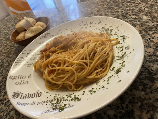 Hungrig und in voller Vorfreude betraten wir die Pizzeria und wurden nett und höflich empfangen, wie bei einem echtem Italiener. Alles wirkte ,wie bei echten Italienern ,nette höfliche Bedienung, frisches Basilikum auf den Tischen,klein gemütlich. Wir brauchten etwas länger zum bestellen ,als wir uns sicher waren was wir wollten ,haben wir alles mit Sonderwünschen bestellt ( viel Knoblauch ) wobei der nette Herr uns darauf hinwies ,das wenn es nicht schmeckt ,man nicht bezahlen müsste. Ich war jedoch total überzeugt ,das es bestimmt schmecken würde, Nudeln vom Italiener schnell wurde ich eines besseren belehrt. Das Essen kam ungelogen, 2 Minuten später. Bestellt hatten wir Spaghetti cabonara mit Knoblauch und Penne cabonara,bekommen haben wir Spaghetti mit purer Sahnesoße und Schinken ,welcher geschmeckt hat wie sufgewärmte Fleischwurst. Null Geschmack, weder den Knoblauch hat man geschmeckt,noch die trockenpetersielie die zur Dekoration auf den Teller gesträut wurde,noch andere Gewürze,es war einfach total laff und absolut geschmacklos, jede 5minuten Terine hat mehr Geschmack. Aus diesem Grund baten wir um frischen Parmesan,in der Hoffnung etwas Geschmack an die Nudeln zu bekommen,es wurden zwei kleine Töpfchen geöffnet und Trockenparmesan drauf geschüttet. Es war einfach total ungenießbar. Auch die Dame hinter dem Herd,war sowas von unfreundlich genervt. Schade ,der Laden sah einladend aus,aber nein danke. Und trotz voller Teller ,zahlten wir die volle Summe,es wurde auch nicht nachgefragt ob alles in Ordnung war, ob es geschmeckt hat oder wieso wir nicht...