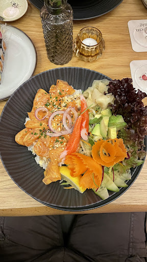 Read moreWe had lunch here on a Thursday in July with a part of two. There was a lunch menu with a free drink or soup of the day included and we could order from the dinner menu as well - we opted for the latter. We could comprise our meal from the sushi menu and the starters and main courses and it was fabulous. The taste, the plating, the colours, the way the sushi got served on a rotation platter with a tub of gastronomic smoke in the center. It was good fun. We are used to some different kinds of sushi so we really enjoyed to see some different ingredients in there like bell pepper, arugula, cream cheese and - as you might have suspected by this - we eat vegetarian and had LOADS of options. A lot of dishes come in a variety of protein sources to choose from, almost all of which include tofu or a veggie option. The service is quick and friendly and prices reasonable. Would highly recommend and if we are ever in Dortmund again we would probably...
