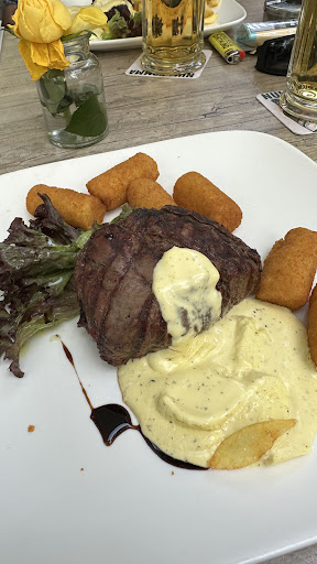 Obwohl zwei Kellner nur hinter der Bar beim Eingang standen waren sie nicht imstande zu grüssen, auch beim direkten ansprechen wurde man ignoriert, als dann endlich ein anderer Kellner anhielt damit wir fragen konnten ob ein Tisch für vier frei sei, war die Antwort mit schauen sie selber nicht gerade besser. Leider sind wir nicht ortskundig und wollten einfach endlich etwas essen anstatt nach weiteren offenen Restaurants zu suchen. Also suchten wir einen freien Tisch zwei freie Zweiertisch durften wir aber nicht zusammenschieben anscheinend funktioniert dann das "System" nichtmehr wenn auf der Gartenterrasse ein Tisch um 15 cm verschoben wird. Also mussten wir uns am Rand fast in eine Hecke reinsetzen, wir warteten sicherlich 15 min bis endlich ein Kellner es schaffte sich zu uns zu bewegen und wir schonmal etwas zu trinken bestellen konnten und dann sagen konnten das wir essen wollten. Auf einmal versuchte der Kellner nett zu sein, anscheinend ist der Service nur zu Gästen nett die essen und mehr bezahlen. Das Essen an sich war gut aber da zu fast jeder Hauptspeise ein Salat dazugehört erschliesst sich mir das Angebot von 5 verschiedenen Salaten auf der Karte nicht, vorallem weil man den Salat zum Hauptgang zahlen muss ob man ihn will oder nicht. Das Salatbuffet war sehr mager bestückt es gab keinen Blattsalat mehr und von den zwei Saucen auch nur noch dürftig, Brot gab es keines. Der Hauptgang war dann der Grund für zwei Sterne das Fleisch hatte gute Qualität und die Beilagen waren sehr lecker, leider waren alle Fleischstücke etwas zu lang in der Pfanne, einer hatte fast ne Schuhsohle auf dem Teller, deshalb gibt es keine drei Sterne. Ich würde das Restaurant trotz des guten Preisleistungsverhältnisses aber nicht...