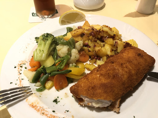 Read moreIch bin zufrieden und satt. Essen war sehr lecker, Bedienung sehr nett und aufmerksam. Die Bratkartoffeln waren handwerklich einwandfrei und schmackhaft, Cordon bleu saftig und gut gefüllt, wenn auch in einer gewöhnungsbedürftigen Form serviert. Es sah fast wie eine große dicke Frühlingsrolle aus. Dies tat dem Geschmack aber keinen Abbruch. Im Gegenteil, gerade durch die Dicke war es innen sehr saftig und auf den Punkt gegart, toll! Das Gemüse wahrscheinlich TK, aber trotzdem guter und einwandfreier Geschmack. Dazu gab es noch einen Salat vom Buffet, dieses könnte etwas mehr Auswahl bieten, aber das ist Jammern auf hohem Niveau. Als Abschluss einen warmen Schnaps aufs Haus, was will man mehr? Ich war beruflich in der Nähe und hatte mir das Restaurant wegen der geringen Entfernung zum Hotel ausgesucht. Sehr zu empfehlen und ich komme wieder, sollte ich mal wieder in...