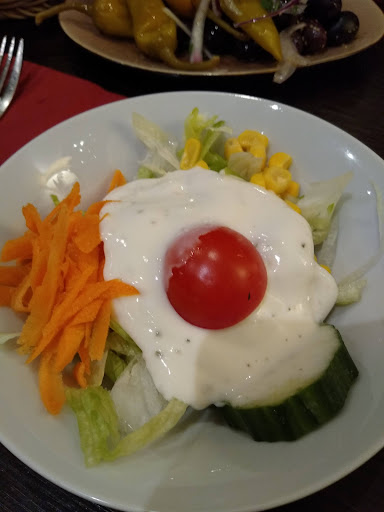 Das Essen war fantastisch. Ich hatte Gyros mit Metaxasoße überbacken. Das ist das Beste was ich je gegessen habe. Bei den meisten überbackenen bildet sich eine Fettlache. Das mag ich überhaupt nicht. Hier ist kein einziges Fett ausgetreten. Es muss ein fantastischer Käse gewesen sein. Selbst der Salat hat super geschmeckt.