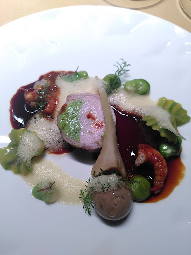 Dabei ist vom ersten Moment an eine klare Handschrift und kulinarische Idee erkennbar. Die Küche verfügt über ein enormes, aus meiner Sicht klassisch-französisch geprägtes, Handwerk auf allerhöchstem Niveau, das nicht nur im Ruhrgebiet seinesgleichen sucht. Dabei bleibt aber nichts in Tradition verhaftet, die Kreation der Speisen ist zeitgeistig/modern und – auch das in der Hochküche nicht selbstverständlich – in jedem Gang durchaus zugänglich und unfassbar vollmundig. Hier findet sich bei aller Schönheit der Teller kein Effekt um des Effekts wegen, nichts lenkt ab, alles dient einem wirklich beeindruckenden, harmonischen Geschmackserlebnis auf höchster Qualitätsstufe, das die Charakteristik der jeweiligen Zutaten hervorhebt und nicht verschleiert.