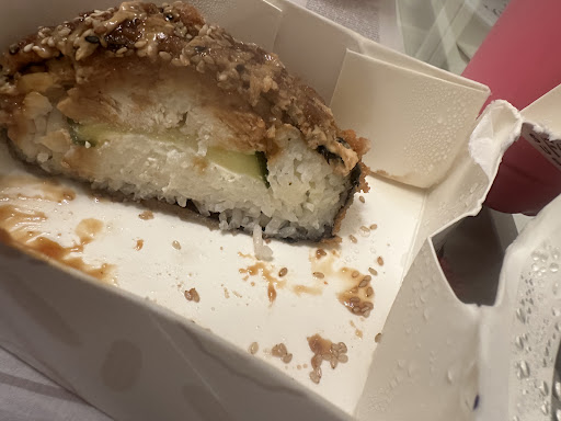 Geschmacklich war das Sushi leider überhaupt nicht überzeugend. Der Reis war völlig ungewürzt, matschig und dominant – er hat den gesamten Geschmack regelrecht überlagert. Es war deutlich mehr Reis als alles andere in jedem einzelnen Teil der Bestellung. Vor allem der sogenannte „Sushi-Burger“ war eine echte Enttäuschung: ein winziges Stück Gurke, ein kleines Stück Chicken – und der gesamte Rest war mit geschmacklosem Reis vollgestopft. Das war kein Sushi-Burger, das war einfach nur Reis mit ein paar Zutaten darin versteckt. Dafür brauche ich keine Bestellung – das kann ich mir ehrlich gesagt auch selbst zuhause machen.