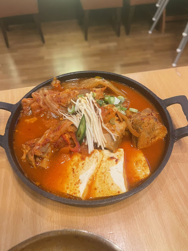 I orderd food and waited..... some item came after in 5 to 10 mintues and the korean tea and ramen was delicious,but the dakgangjeong seems to be chilli but it was very sweet and a disappointment!!!after a longgggg wait and after asking they brought the bibimbap and the extra egg was like rubber i felt why did i ask for a rubber egg,and couldn't finish it beacsue the red raw cabbage seems very dissapointing and the minimal authentic vegetables!!! The service a young lady who took us with a beautiful smile was so nice,and a guy with long hair called him 3 times he told 1minute but never attended the table,they misplaced the item many times which I noticed that they got confused to serve dishes to designed tables with those confusion they take the order bill and go and check each table if they put the food on right table which was a bit annoying,they should put a number to the each table and do some good system of serving the food to right table ,tottaly dissapointed!!!! I drove 1.30hours to dine there,and it made me really really upset. But the atmosphere deco seems quite beautiful and cozy... but to go there once more...