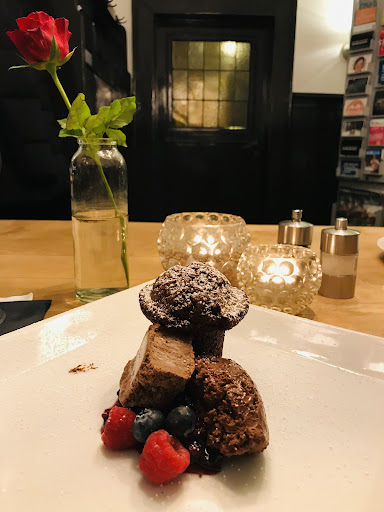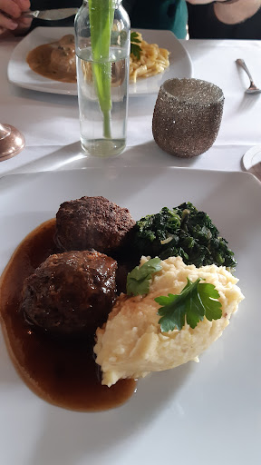 Wir nutzten einen Groupon-Gutschein der ein exklusives 3-Gänge-Menü versprach: • Gruß aus der Küche • 1. Gang: Hausgebackenes Brot, Rosmarinbutter, Meersalz, Oliven • 2. Gang: Hauptgang je Person nach Wahl o Original Wiener Schnitzel, Bratkartoffeln, Salat o Rumpsteak „Strindberg“ mit Zwiebel-Senf-Kruste o Vegetarische Pasta mit frischen Pilzen, Parmesan und grünem Spargel • 3. Gang: Schokolava, frische Erdbeeren, Madagaskar-Vanille