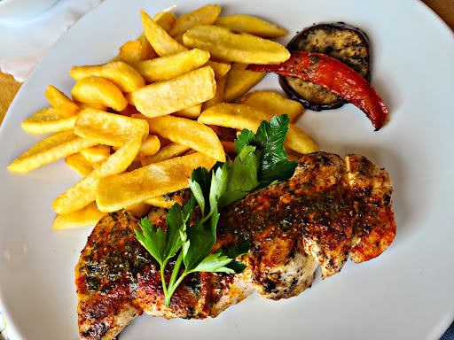 Read moreEssen war zwar ok, aber völlig überteuert. Für sage und schreibe 18,90 habe ich 5 Garnelen erhalten. Das Gericht aus der Pfanne war beschrieben mit "Riesengarnelen Pfanne mit gegrilltem Gemüse Zwiebeln und Baguett". Meiner Vorstellung nach ein nicht allzu riesiger,aber dennoch sättigender Teller. Erhalten habe ich eine Scheibe Aubergine ca3cm Durchmesser , ein streifen Paprika, ein Berg Zwiebeln und Baguett und 5 kaum aufzufindene Garnelen. Für 18.90 ein Klecks aus Essen der auf dem großen Teller kaum zu sehen war!!!! Besser wäre das Gericht beschrieben worden mit:"Ein Berg Zwiebeln und Baguett, garniert mit Garnelen uns gegrilltem Gemüse"!Noch dazu hatte die Bedienung eine sehr unsympathische Art Gäste zu bedienen. Wir kommen...