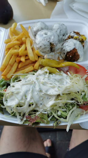 Read moreNachdem ich den Döner bestellte, musste ich 1 1/2 h warten, bis mir der Verkäufer genervt ein nasses triefendes Brötchen in die Hand drückte. Da das Brötchen (falls man den Kot so nennen kann) selbstverständlich, an der Unterseite aufgerissen war, lief mir die pampige, ungenießbare Suppe, die einem der Verkäufer doch tatsächlich als Soße verkauft, über die Hände. Nur Blöd, dass er vergaß, Servierten in die nun als Fettteich dienende Tüte zu legen. Mehr als einen Stern hat dieses, einen schändende Haus, niemals verdient. Man sagte mir besuche den Laden, nun vertraue ich...