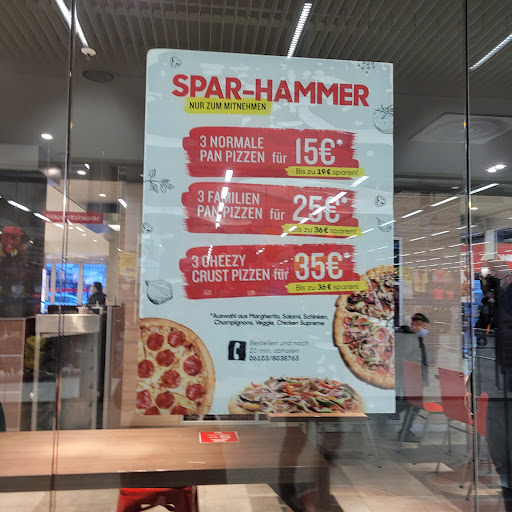 Read morePuh....wo fange ich an. Wir wollten uns gestern eine CheezyCrust gönnen. Telefonische Bestellung nicht möglich, Lieferando 120min Wartezeit... Also hingefahren, stand an der Kasse und wartete. Nach ein paar Minuten machte ich auf mich aufmerksam, ein Mitarbeiter beim Vorbeigehen: "macht Kollegin". Ok dachte ich und lächelte sie erwartungsvoll an. Nachdem sie den Pizzen beim backen genug zugeschaut hatte, galt ihre Aufmerksamkeit endlich mir. Gut, bestellt mit einer angegebenen Wartezeit von 30min. Während der Wartezeit, sahs ich am Tisch und beobachtete ein wenig das Geschehen.... Die Tische und die Zubereitungstheke waren fast verschmutzter als der Fußboden, der Rückgabetrolley war voller als voll und die Mitarbeitenden fragten mich insgesamt dreimal ob ich schon bestellt hatte (wohlgemerkt war ich die einzig wartende Person). Es wäre sicherlich auch schneller gegangen, wenn man nicht bevor man mit der CheezyCrust begonnen hätte, mit Kollegen gequatscht oder am Handy getippert hätte, aber sei es drum, immerhin habe ich nach 25min schon meine Bestellung erhalten. Geschmacklich war es "anders" als man es von der Hanauer Landstraße gewohnt ist (dort wird sonst von uns Bestellt, im übrigen geht dort eine telefonische Vorbestellung). Der Teig war sehr labbelig und der Rand schmeckte roh, der Käse zäh wie Gummi und stellenweise kalt. Definitiv werden wir sofern wir wieder eine CheezyCrust haben möchten, die Sprendlinger Filiale meiden und die 10km weiter auf die Hanauer Landstraße fahren. Dort gibt bessere Qualität, sei es beim Personal, des Service...