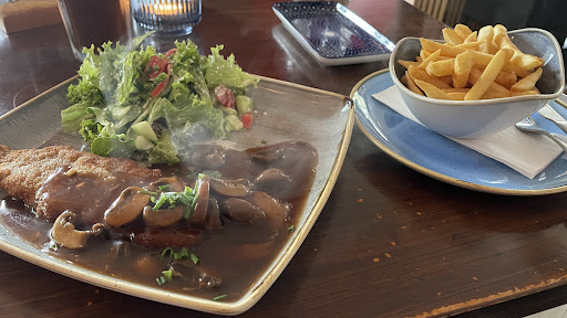 Die wechselnde Mittagskarte ist immer ein Highlight. Es gibt immer etwas Neues zu entdecken, von leichten Salaten bis hin zu kreativen Gerichten mit Fisch oder Geflügel, sodass wirklich für jeden Geschmack etwas dabei ist. Man merkt, dass hier mit Leidenschaft gekocht wird und die Qualität der Zutaten konstant top ist. Aber auch abseits der Mittagspause ist das Lokal einen Besuch wert! Die selbstgemachten Kuchen und Torten sind einfach ein Traum. Ein besonderes Highlight ist der Apfelweinkuchen, der unglaublich lecker schmeckt. Man kann also auch wunderbar für einen Kaffee und Kuchen vorbeikommen, wenn man nur eine Kleinigkeit genießen möchte.