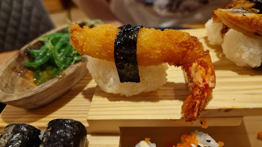 Kurzfassung: das Sushi ist in Ordnung, etwas zu Salzig und geschmacklich leider nicht so "frisch" wie ich mir eine Sushi Platte wünschen würde. Sprich, zu viel fritiert, zu schwer und dann ist die Panade leider euch deutlich zu dick und nicht so knusprig wie Panko sein kann (siehe Bilder). Außerdem war der Service nur ok. Ambiente hat uns aber sehr gut gefallen, auch wenn wir den Preis für etwas hoch halten (50€ für einen Salat + Sushi Platte für zwei).