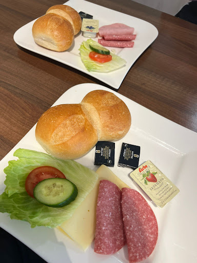 Read moreErstmal Hallöchen an alle :) , Also wir waren gerade zu zweit frühstücken und haben uns für dieses kleine aber fein aussehende Ambiente entschieden. Hier gibt es definitiv einen "Wow-Effekt". Unser Kuchen( Mondkuchen und ich glaube tutti-frutti hieß meiner) waren einfach genial!( ja der Mohnkuchen hat so gut geschmeckt, dass mein Mann ihn schon fast aufgegessen hatte, bevor ich überhaupt ein Bild machen konnte😅, aber auch meiner war soo fantastisch😋😍) wie Ihr auf unseren Bildern sehen könnt, haben wir wirklich relativ viel für zwei Personen bekommen und das zu einem Preis von gerade mal knapp 12,50€. Also ist das Preis-Leistungsverhältnis ebenfalls top! Ich bin so fasziniert von dieser Bäckerei&Bistro, dass ich immer wieder hier hin gehen werde wenn ich in Dresden bin ^^ (und das habe ich ihnen auch gesagt & und sie haben sich auch absolut gefreut🙈). Auch das an Kinderwagen, Rollstuhl und raucher gedacht wurde finde ich toll( wie man dem Bild entnehmen kann sind die Aschenbecher so platziert dass man diese auch schnell und einfach sieht). Alles in allem ist das Personal super freundlich, das Essen nur empfehlenswert mit einem guten Preis und es ist absolut sauber und ordentlich...( wo sich manch anderes Geschäft wirklich etwas abgucken kann). Und trotz der relativ großen Besucherzahl, kamen wir sehr schnell dran und parkplätze sowie Sitzplätze waren trotzdem genügend...