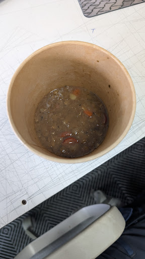 Read moreMein Mann und ich waren zum 1.Mal zum Essen in der Bäckerei Möbius. Das Mittagsangebot war ausreichend zur Auswahl. Die Preise allerdings etwas überzogen. Soweit so gut. Das gesamte Essen wird abgewogen. Eine Soljanka darf nicht mehr als 250 Gramm wiegen, selbstverständlich mit Brötchen. Spirelli mit jagdwurstwürfel und Käse wird ebenfalls ganz genau abgewogen. Erst die Spirelli, dann obenauf die Wurst und zuletzt der kleine Löffel Käse. Geht es hier ums Geld oder geht es darum, weniger Abfall zu produzieren? Übrigens das Essen könnte etwas wärmer sein. Eins will ich noch los werden, der Mitarbeiter an der Essensausgabe war sehr freundlich. Für ihn einen Daumen hoch, alles andere...