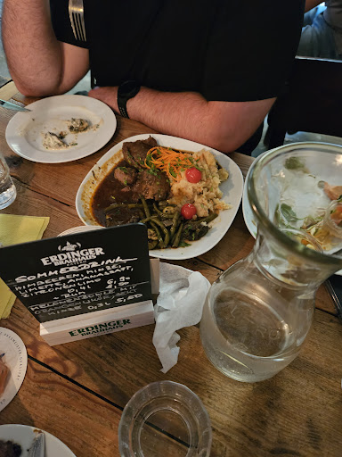 Wir kamen zum ersten mal, gegen 11:30, ins Lokal und setzten uns zu unseren Freunden im Biergarten an den Tisch… Rundherum alle Tische besetzt. Nachdem nach 15min noch kein Servicemitarbeiter im Garten erschien gingen wir zur Bar. Und siehe da es gab gleich 3 oder 4 Mitarbeiter. Wir konnten unsere Getränkebestellung nun aufgeben.