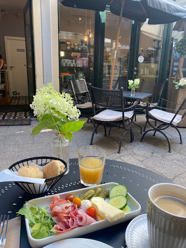 Read moreServed inside or outside (in the shade, no sun at all). Found in a small alleyway. Food/drinks: we had the “hearty meal for the day” - good selection of meat, some cucumbers, tomatoes, pickles, butter, rucola. Served with 2 bread pieces. Enough for 2 people wanting a light breakfast. Coffee ordered extra (americano) Juice came with the meal. Service: The cashier/waitress spoke great English! Atmosphere: very cozy and nice, plenty of space inside as well....