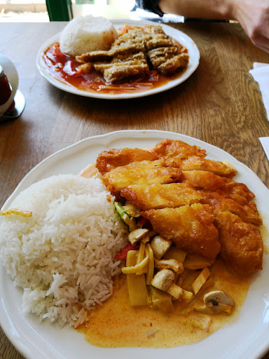 Das Paeng Gai Brokkoli mit Reis war leider nicht wirklich genießbar, da dies zu viel Salz und zu wenig rotem Curry-Geschmack hatte. Ich bin dann gleich mit dem Teller an den Tresen und habe dem Service mitgeteilt, dass es ich das so nicht essen kann. Der Koch hat die Soße probiert und gemeint, dass es so normal schmeckt. Seine einfach Lösung war, es nochmal zu erwärmen und mit normaler Milch und Kokosmilch zu strecken. Zufrieden war ich mit dieser Lösung schon beim zusehen nicht wirklich. Nachdem ich das Essen zurück bekommen und erneut probiert habe, war es leider nicht besser. Das Ergebnis war, dass ich mehr als die Hälfte stehen gelassen habe.