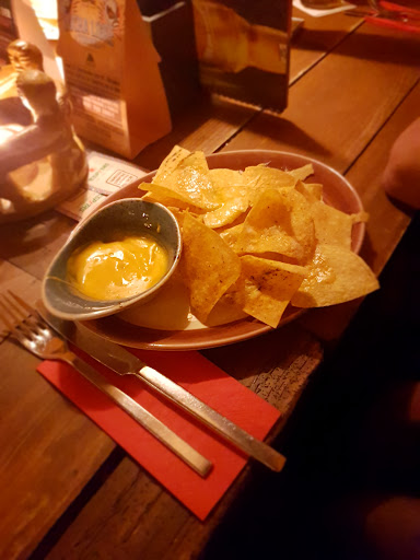 Read moreEspitas ist (zumindest das Abendessen) sehr lecker, vor allem die Rippchen und Enchiladas, wobei der Kakao-Chili Enchilada zwar genau nachdem schmeckt, was auf der Speisekarte steht, es aber nicht sonderlich gut schmeckt (aber wie jeder weiß, Geschmack ist subjektiv). Generell aber ist erstmal zu sagen, dass man auf jeden Fall mehr als genug gutes Essen für sein Geld bekommt. Das Personal ist z.T. sehr motiviert unterwegs, was manchmal dazu führt, dass ihr Weg zu dir etwas länger dauert, „weil viele andere Gäste bezahlen wollten“ (ich ignoriere hierbei die Tatsache, dass ich meinen Kellner beobachten konnte, wie er von Tisch zu Tisch ging und quatschte, ohne (!) Geld auch nur ansatzweise in die Hand zu nehmen, aber egal). Abgesehen davon ist das Restaurant sehr schön gestaltet mit viel Liebe zum Detail und man kriegt sogar leihweise ein Kartenset vom hauseigenen Quartettspiel am Tisch, womit man sich seine Zeit vertreiben kann, wenn man nicht gerade alleine Essen geht. Zudem gibt es auch eine Herausforderung, die lautet, dass man gegen einen hiesigen Mitarbeiter (ich habe leider die spanische Begrifflichkeit vergessen) spielt und wenn man ihn nach den Regeln innerhalb einer best. Zeit ausreichend oft im Spiel schlägt, kann man Preise/einen Preis gewinnen. Coole Idee, hab ich bisher noch nicht so gesehen. Eigentlich ein Restaurant, dass eine 5 Sterne Rezension verdient hätte, aber die sehr freundschaftlich-veranlagten Kellner sind dann wohl doch zu freundlich und brauchen dann ihre Zeit. Dennoch komme ich...
