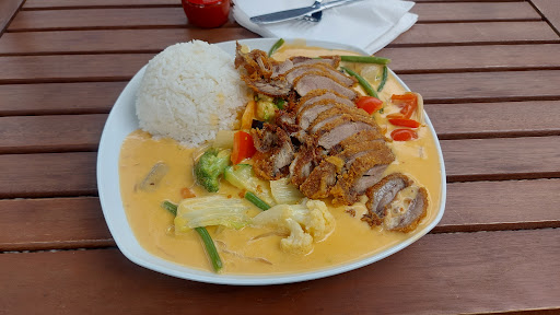 Read moreWir waren in den letzten Jahren regelmäßig vor Ort essen oder haben uns das Essen nach Hause geholt. Es war immer eine sehr gute Qualität. Wenn möglich sitzen wir draußen. Trotz direkt an einer Haltestelle gelegen ist es recht idyllisch. Leider hat das Essen nach der Umstellung der Karte deutlich nachgelassen. Die gebratenen Nudeln sind oft kaum gebraten, haben nur Sprossen und Möhren als Beigabe, auch die fast roh. Gerichte mit Glasnudeln gibt es keine mehr, sehr schade. Das Fleisch gebacken war bisher immer okay, das Huhn in den gebratene Nudeln aber leider kalt und gefühlt nur kurz gekocht. Alles in allem der Service und das Ambiente sind gut, das Essen sehr...