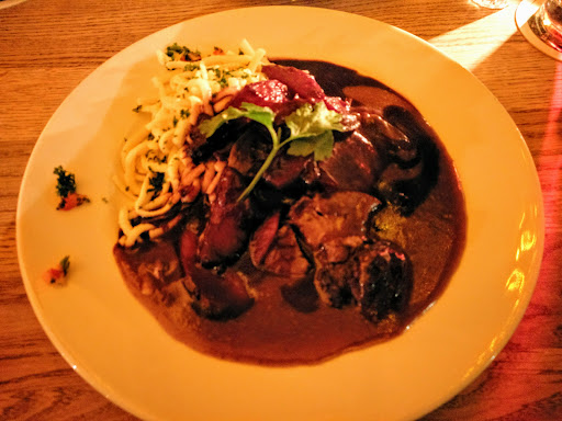 The food was quite good, but the service was suuuper slow. We ordered strudel to be brought after our food, and when we were done the waiter said it was never ordered. 20 minutes later, we're still waiting and had to go already. We asked for the check, and the waiter suggested we can pay and leave, but have to pay for strudel as well. Ridiculously slow and bad service, and all this during Monday afternoon, with only 4 tables taken in the...