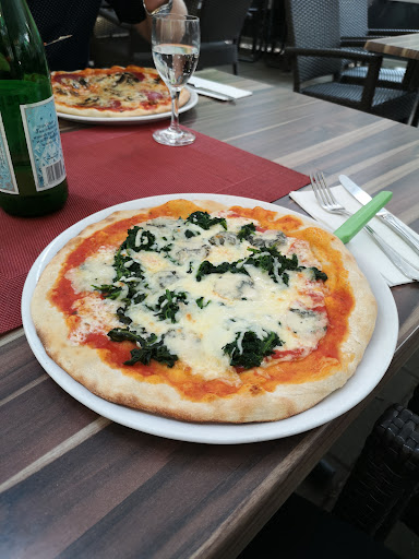 Das Essen war lecker, jedoch kann es nicht sein, dass in einem Restaurant auf einer Meeresfrüchtepizza noch die Därme in den Shrimps drin sind. Geschmacklich war es jedoch i.o.