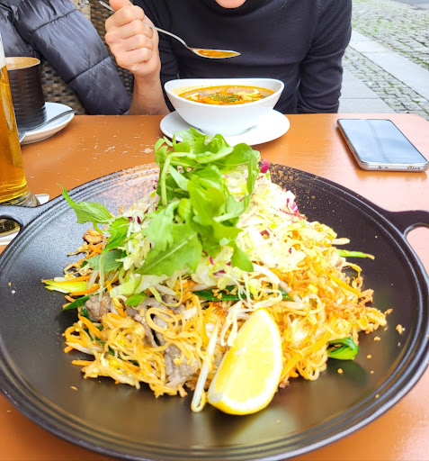 The best Vietnamese food I have tasted so far. I'm not a fan of Asian cuisine and ordered only Tom Yum Gung soup, but after tasting the noodles with vegetables and beef from my companion I began to regret very much that I did not order more (the restaurant from 15 has a break, and unfortunately we were after 14). The dish with pasta and beef was full of delicious, crunchy vegetables, perfect proportions and perfectly seasoned. My "meat" companion was delighted with the taste. My soup was soooo tasty that I plan to try every soup there. The prices at this place are incredibly low considering the quality of the food. The gentleman serving us was very nice and smiling.Recommended...